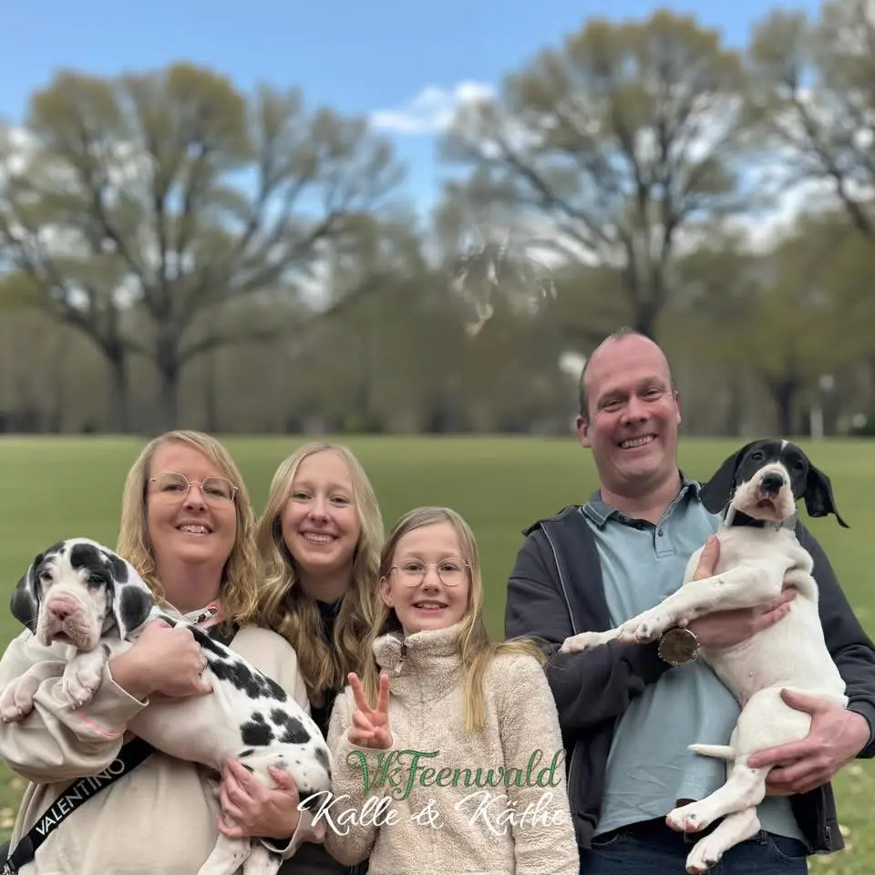Viel Freude und ein langes Leben wünsche ich meinen Feen „Kalle, Käthe, Klein Snowflake und Konrad„ zeigt den Menschen da draußen wie sehr eine reinrassige DEUTSCHE DOGGE verzaubern kann und das es wichtig ist, einen guten DDC Züchter auszusuchen…
